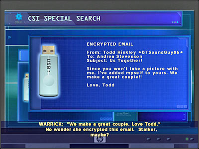 Este formato, que viene a ser como una edición remasterizada de las aventuras conversacionales y gráficas de siempre, podría ser válido si proporciona al jugador cierta sensación de libertad o incluso que el resultado de los acontecimientos dependiera de nuestro ingenio o de nuestro talento. Nada más lejos de la realidad, CSI se convierte en un ir y venir de un lado a otro de las pantallas sin temor a que nos podamos equivocar y que, incluso en el remoto caso de quedarnos atascados, siempre podemos pedir una pista al compañero.