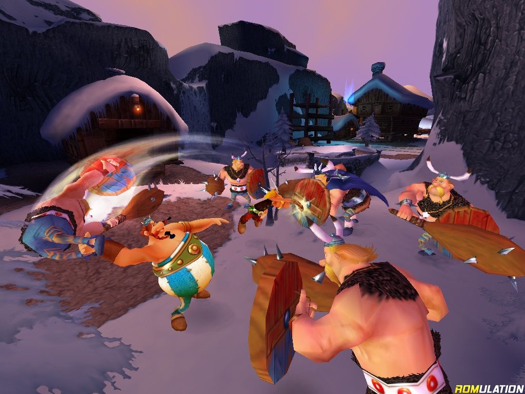 El catálogo de técnicas de Astérix y Obélix, descontando los especiales anteriores, no es precisamente limitado, aunque tampoco llega a la variedad de títulos como Prince of Persia o Legend of Kay. Disponemos de combos básicos (presionar insistentemente un botón), así como de combinados como Cuadrado + Aspa, así mismo, con círculo pegamos una patada que libra de su protección al enemigo, dejándolo un momento indefenso, que podemos aprovechar para contraatacar. Si el enemigo no tiene escudo u otro elemento que lo proteja, con ese mismo botón lo atontaremos (animación de estrellitas incluida), y podremos cogerlo y azotarlo tranquilamente. Una de las cosas más curiosas de las batallas es el «frenetismo» de nuestros héroes, que pondrán sus puños en tonalidades naranjas/amarilla si repartimos candela seguidamente, dentro de este sub-estado, al coger un enemigo con triángulo soltará fuego, y algunas cosillas similares.